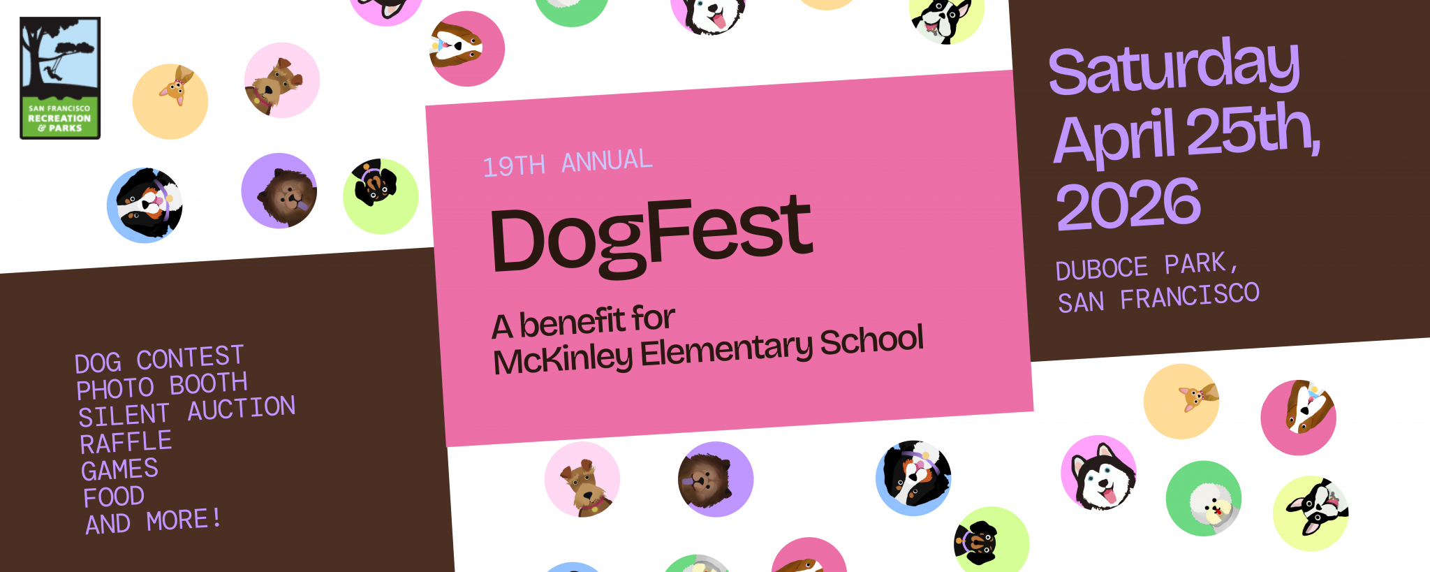DogFest is a celebration of dogs, families, community, and spring in San Francisco. It’s also a charitable event that raises funds for McKinley Elementary – a small public school in the neighborhood.